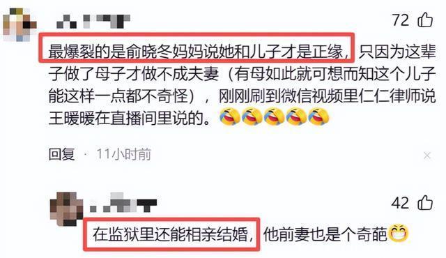 之后,王暖暖更是爆料称,俞晓东母亲和俞晓东的关系更是毁三观,不仅出去玩要住一个房,甚至婆婆还表示自己和俞晓东才是正缘。