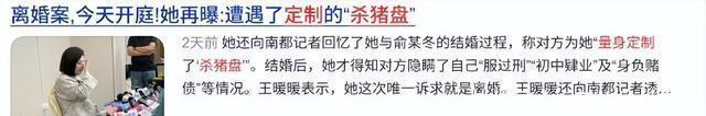 但无论怎么样,王暖暖还是非常坚强的,也希望之后她能带着孩子好好生活。 各位网友们,大家对于这件事情怎么看呢? 大河报-2025-09-27——《消失的她》原型王暖暖:俞某冬曾想将我卖到缅北妓院,因接头人迟到未能如愿 南方都市报-2025-09-26——《离婚案,今天开庭!她再曝:遭遇了定制的“杀猪盘”》 红星新闻-2025-09-25——《被丈夫推下悬崖6年后泰国坠崖孕妇离婚官司26日开庭王暖暖谈难点:此前没类似判例男方在泰国监狱,还不同意离婚》
